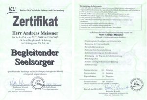 - Ausbildung (berufsbegleitend) zum Begleitenden Seelsorger/Berater